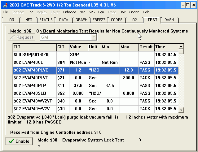OBD-2 Automotive Scan Tool Browser Test results screen shot